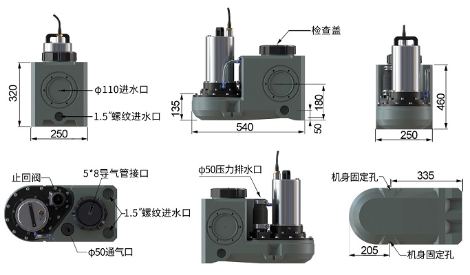-  別墅、大平層等家用地下室衛生間和廚房等場所的污水提升排放