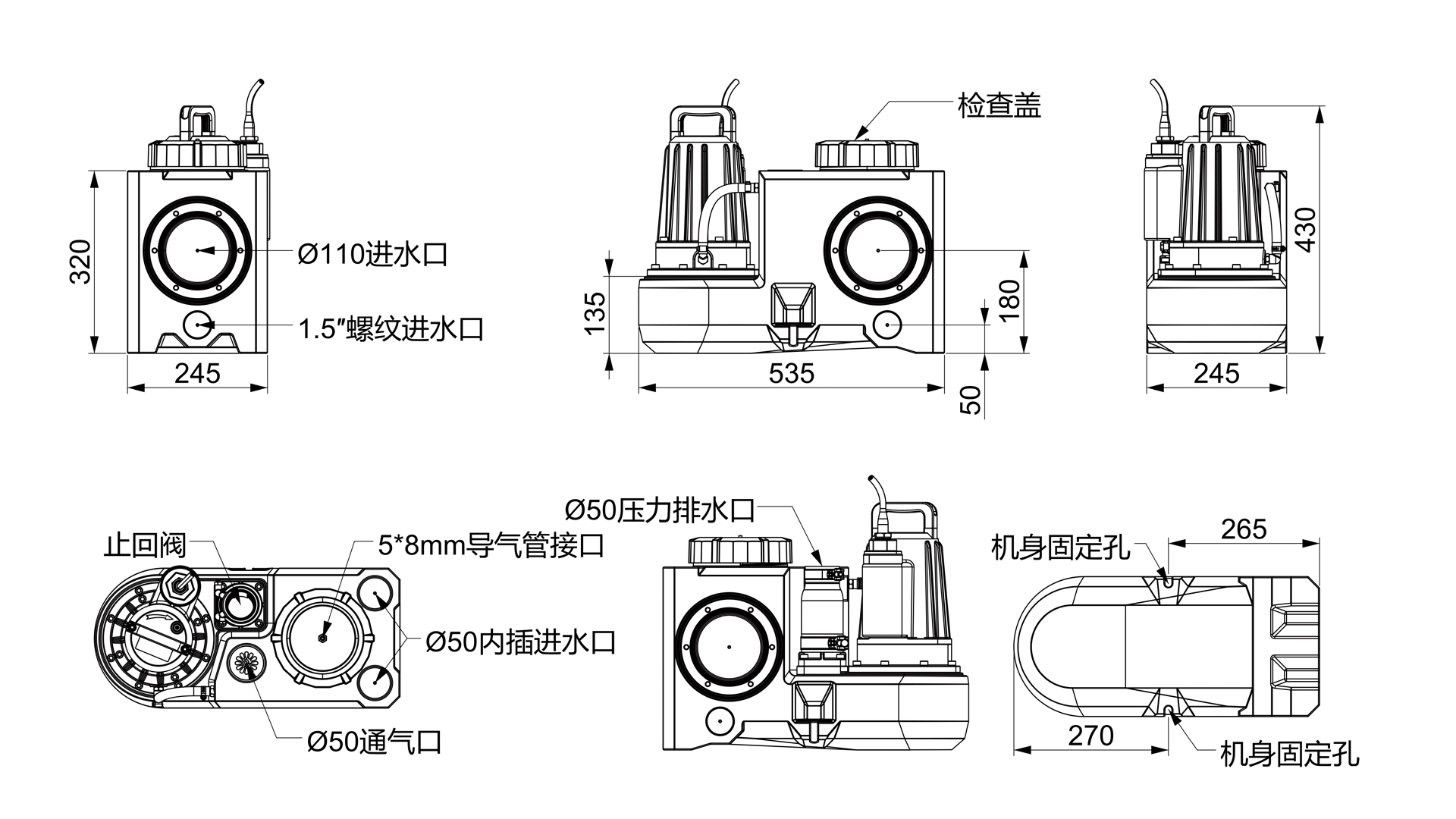 -入水口:3×φ110,4×φ50