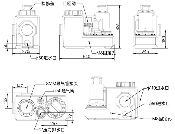 · 2個Φ110和2個Φ50進水口。